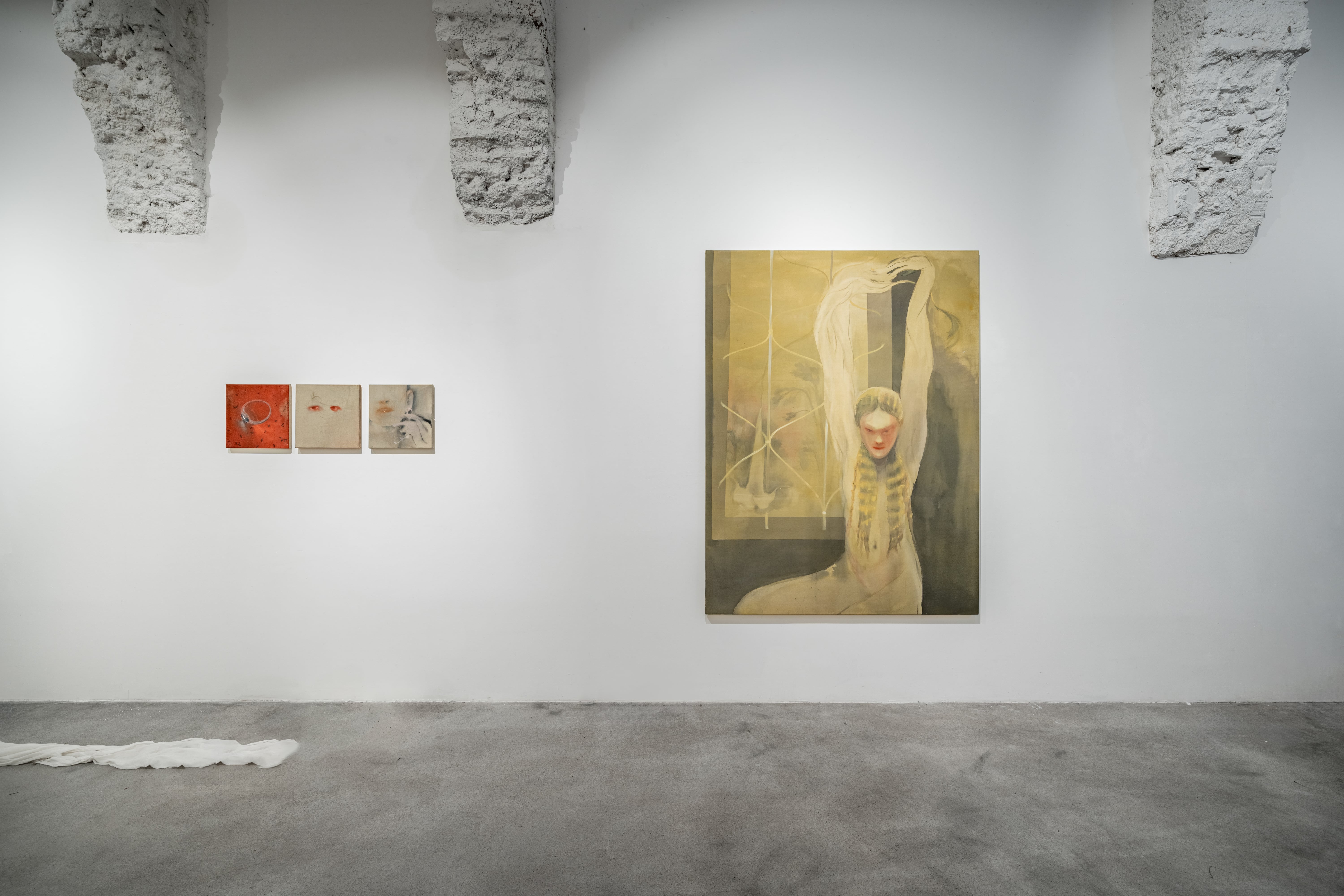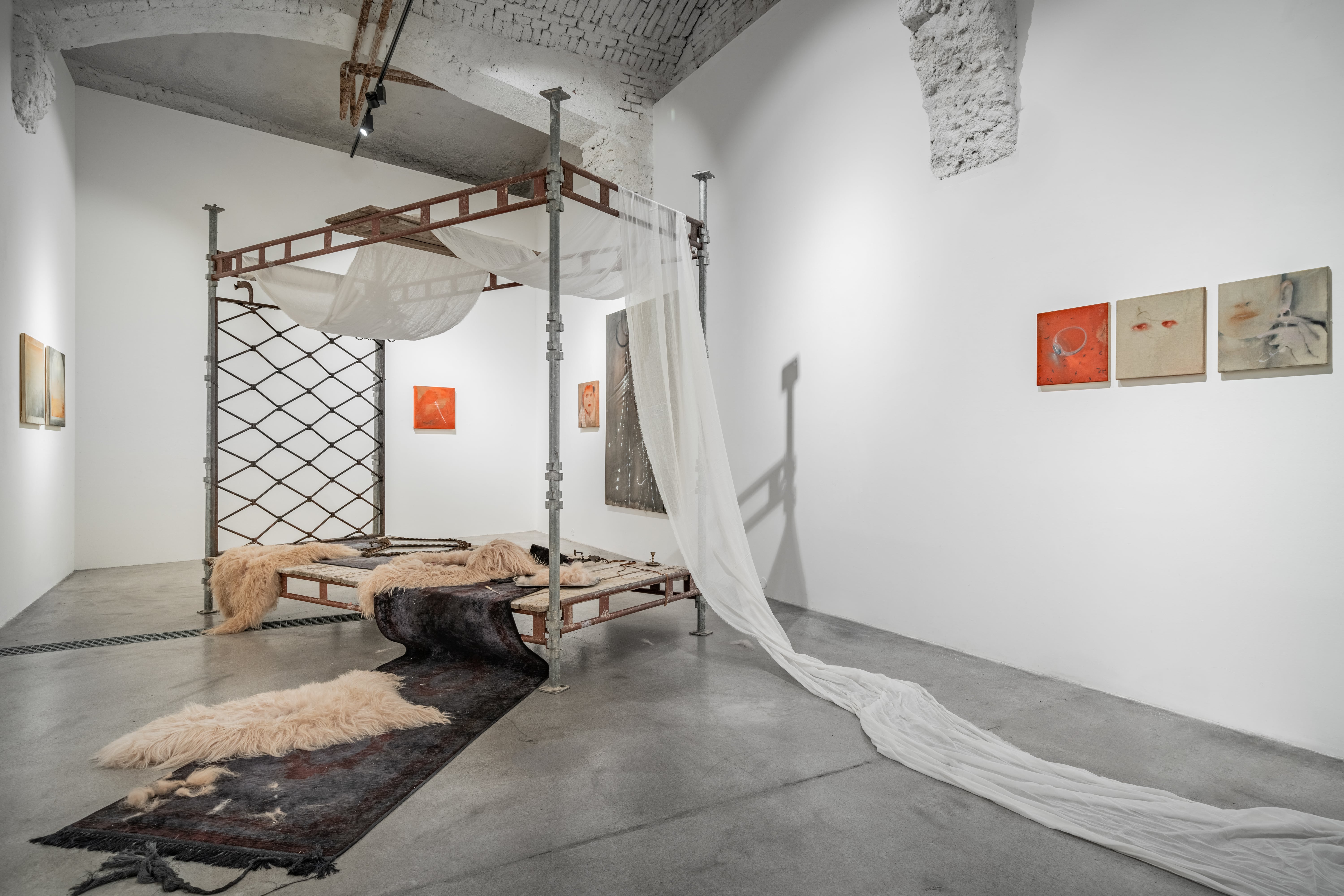 Anna Ruth (*1994) graduated from the Prague Academy of Fine Arts in the Drawing Studio under Jiří Petrbok and Martin Gerboc and during her studies she completed internships in Poland and Indonesia. She sets her (often large-format) paintings in installations, creating complex environments that extend beyond the limited pictorial surface. This is further echoed in ambient exhibition soundtracks, music performances and solo concerts under the pseudonym Koruth. With her multidisciplinary expression, she is a young but distinctive talent on the contemporary art scene. Her recent solo projects have been presented at Pragovka or at the Brno-based artist-run space Zaazrak Dornych. This year she is also taking part in the SWAB fair in Barcelona and the Turkish Contemporary Istanbul.